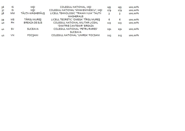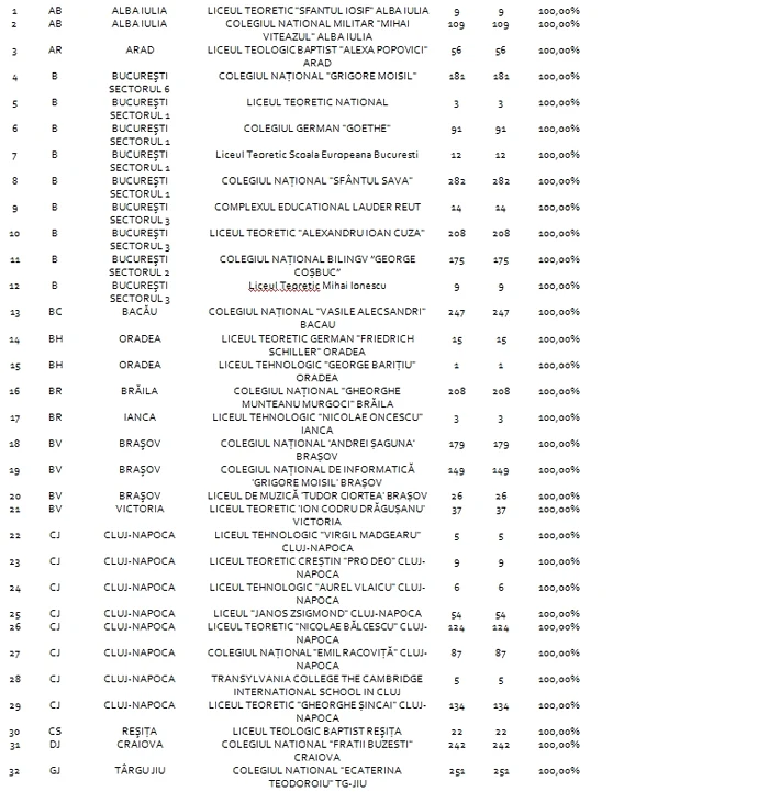 La cealaltă extremă, absolvenții din 42 de licee au promovat 100% examenul de Bac 2015.