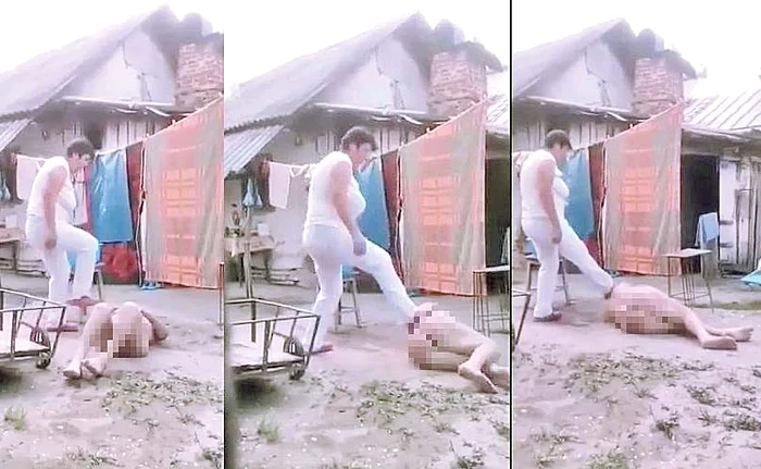 Scene şocante! Bătrână dezbrăcată și lovită cu picioarele de fiica ei