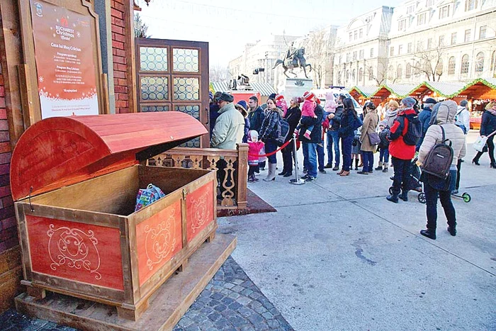 - Vino cu daruri la Târgul de Crăciun din Bucureşti. În fiecare an, Târgul de Crăciun organizat în Piaţa Constituţiei are şi o componentă socială. „Dăruieşte, fii mai bun! Şi tu poţi fi Moş Crăciun!” – acesta e mesajul pentru toţi cei care vor să ajute copiii aflaţi în dificultate. Cum pot face acest lucru? Până pe 20 decembrie, vino cu jucării, cărţi sau hăinuţe şi lasă-le în cufărul amplasat la intrarea în Casa lui Moş Crăciun.