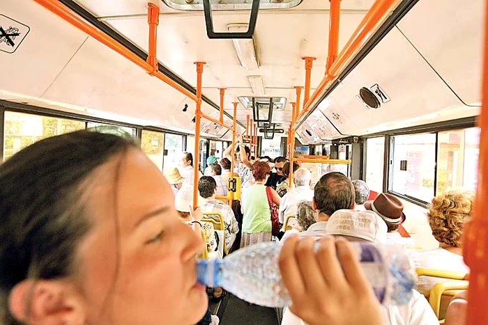 Dacă eşti obligat să faci în aceste zile mai multe drumuri, fie de acasă la serviciu şi înapoi, fie pentru că ai treabă, cu siguranţă vei călători cu mijloacele de transport în comun. Pentru bucureşteni lucrurile sunt mai simple, deoarece pot merge cu metroul. Însă, dacă eşti nevoit să circuli cu autobuzul, tramvaiul, microbuzul sau troleibuzul, trebuie să-ţi iei măsuri suplimentare de siguranţă pentru a face faţă caniculei. Nu de alta, dar ar fi un miracol să nimereşti într-un autobuz cu aer condiţionat.Evită aglomeraţia! Dacă autobuzul este plin ochi nu încerca să te împingi ca să-ţi faci loc. Mai bine mai aştepţi câteva minute şi iei altă maşină, care este mai liberă.Nu te aşeza pe rândul de scaune din spatele autobuzului pentru că în timpul mersului, când motorul funcţionează, acestea se încălzesc destul de tare.Bea cât mai multă apă şi cumpără-ţi un evantai cu care să-ţi faci vânt ca să te mai răcoreşti.Dacă simţi că ţi se face rău, roagă pe cineva care stă pe scaun să-ţi cedeze locul sau încearcă să cobori la prima staţie. Fă orice numai să ieşi la aer şi să ai parte de puţină umbră sau răcoare.