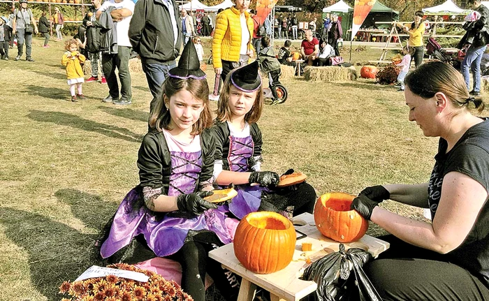 Zeci de copii cu părinţii lor au venit ieri să sculpteze dovleci pe pajiştea din parc. Unii erau deja costumaţi corespunzător, de Halloween. “Ne-am cumpărat cu câte 30 de lei kituri de sculptat. Un dovleac îl luăm acasă, pe altul îl lăsăm aici, pe zid”, au spus Irina şi Bianca, două fetiţe de 7 şi 8 ani, costumate în vrăjitoare. Organizatorii și-au propus să pună împreună 30.000 de dovleci personalizați și să formeze un zid înalt de 5 metri și lung de 100 de metri, care în fiecare seară e iluminat. Ieri dimineaţă, zidul era pe jumătate plin, iar festivalul continuă şi azi. Nu lipsesc plăcintele şi prăjiturile cu dovleac, dar şi mâncarea tradiţională, mustul şi castanele coapte.