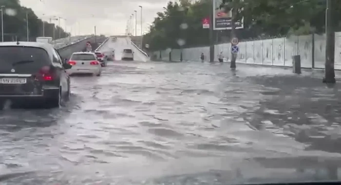 Cod portocaliu de ploaie torențială în București. Au fost inundate străzi și bulevarde foto: captură Digi24