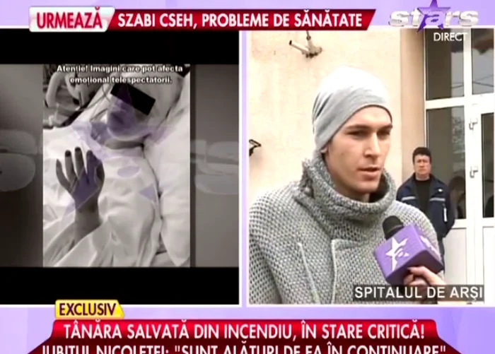 Se pare că tânăra încă scuipă funingine, semn că arsurile sunt încă grave. Urmează să fie supusă unei intervenţii chirurgicale, pentru a-I fi înlocuită pielea arsă cu piele prelevată de pe coapse. Ea încă nu este în afara pericolului, potrivit Antena Stars.