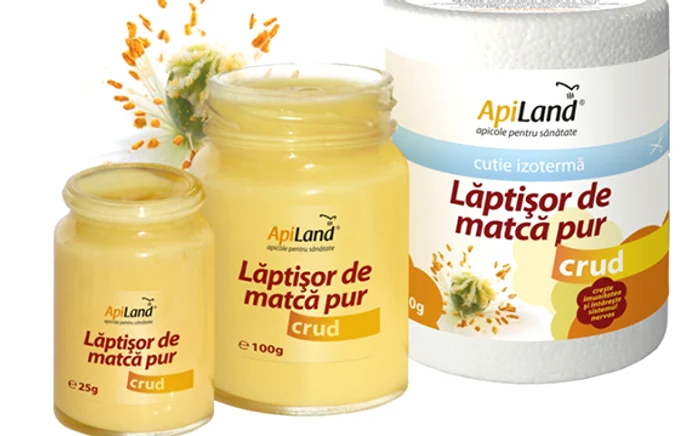 Trebuie însă să alegeţi lăptişorul de matcă pur, de cea mai bună calitate, aşa cum este lăptişorul de matcă Apiland. Accesând www.apiland.ro, veţi avea surpriza ca - la cumpărarea unei cutii de 100 grame de lăptişor de matcă - să primiţi gratuit o cutie de 25 de grame de lăptişor de matcă. Şi veţi vedea că o cură cu lăptişor de matcă vă va face mult mai sănătoşi, mai energici, mai viguroşi!
