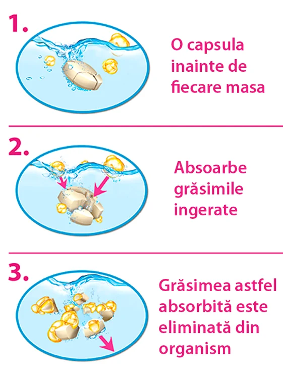 Cum atrage Konjac Forte grăsimile?Konjac Forte este singura bio-granulă capabilă să își multiplice de 100 ori volumul odată pătrunsă în stomac. În doar câteva minute, senzația de sațietate se instalează și nu vei mai simți nevoia să mai mâncați nimic.