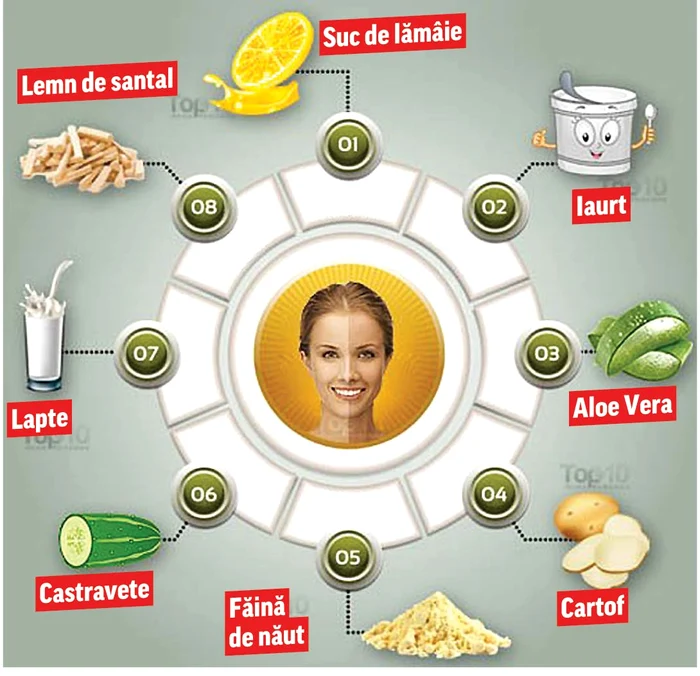 Castravetele, cartofii şi făina de năut sunt cunoscute de mulţi pentru proprietăţile lor în tratamentele cosmetice şi pentru efectele pozitive pe care le au asupra pielii. Iaurtul şi o frunză de aloe vera intră şi ele în „trusa” de urgenţă a celor care nu au fost prudenţi şi nu au folosit o soluţie cu factor de protecţie împotriva razelor ultra-violete.