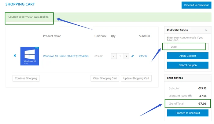 Doar folosiți codul-cupon “VC50” coșului dumneavoastră de cumpărături, înainte de a finaliza tranzacția pentru mai multe produse: