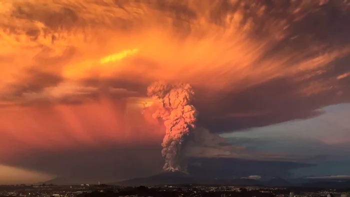Erupția violentă a unui vulcan din Chile a fost surprinsă într-un material video spectaculos de tipul timelapse.