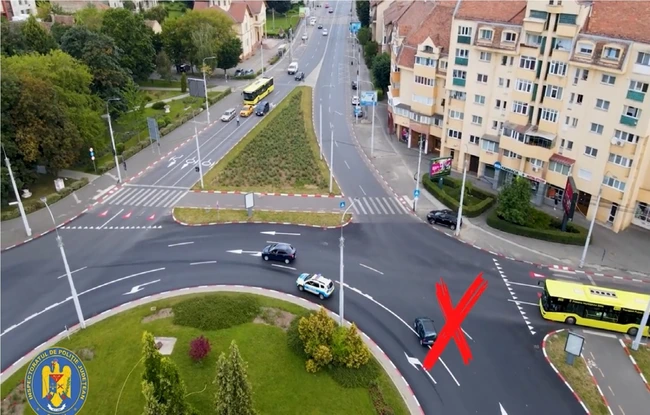 - Banda 1 are prioritate față de vehiculele care intră în giratoriu.