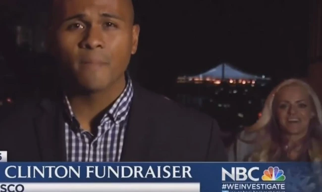 Femeia a intrat în cadru, a chicotit, iar apoi și-a ridicat tricoul în fața camerei, arătându-și sânii complet dezgoliți. Totul s-a întâmplat în timp ce un reporter NBC vorbea despre o strângere de fonduri organizată de Hillary Clinton în San Francisco.