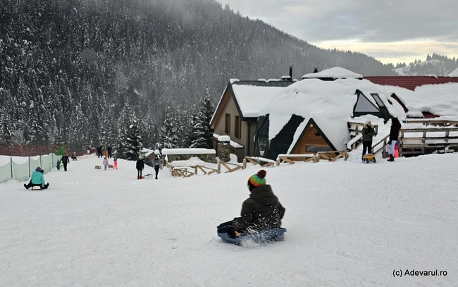 Turiștii care doreau să se bucure de zăpadă au fost nevoiți să continue să urce pe jos pe drumul județean plin de noroi și zăpadă, deoarece puținele locuri de parcare din centrul stațiunii erau pline.