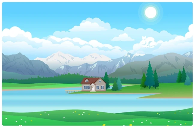 După cum puteți vedea, desenul de mai sus pare destul de simplu. Este vorba despre o casă aflată în inima naturii, cu munți și păduri în fundal. Pe lângă casă se află și o apă, cel mai probabil fiind vorba despre un râu, sau chiar și un lac.
