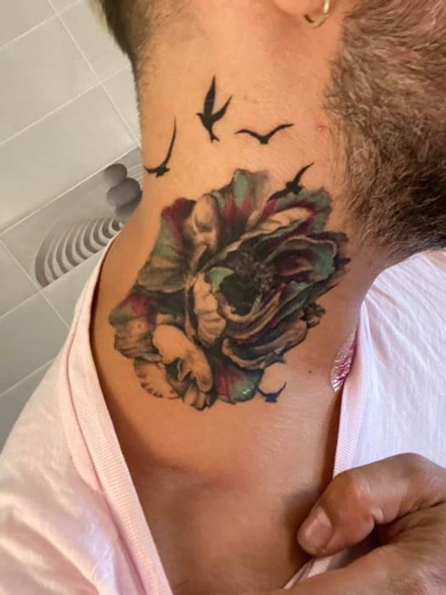 De data aceasta, cântărețul a decis că trebuie să-și tatuaje din nou gâtul. Acum și-a făcut un desen abstract, însă la prima vedere noul tatuaj are în prim plan o floare colorată și mai multe păsări zburând. Drept urmare, cântărețul și-a provocat fanii să spună dacă înțeleg ce înseamnă noul tatuaj.