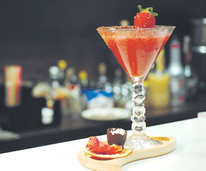Alexandru Tudor, barman profesionist, îţi propune un cocktail pe bază de căpşune.