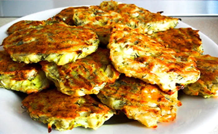 Preparare: Cureţi dovleceii de coajă şi-i dai prin răzătoare. Le pui puţină sare, îi dai deoparte 30 de minute şi-i storci pentru a elimina excesul de zeamă. Adaugi oul, piper, după gust, pesmetul, verdeaţa şi le amesteci cu grijă. Cu o linguriţă, formezi chiftelele şi le prăjeşti în ulei încins până se rumenesc. Le serveşti cu salată de legume şi cu piure de cartofi.