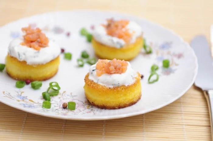 Canapele de mămăligă cu cremă de brânză