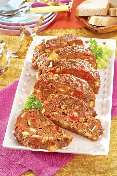 - Condimentezi cu sare şi piper, după gust. Tapetezi cu hârtie de copt o tavă de chec în care aranjezi amestecul de carne tocată. Dai tava la cuptorul preîncălzit, la 170 °C, 45-50 de minute.