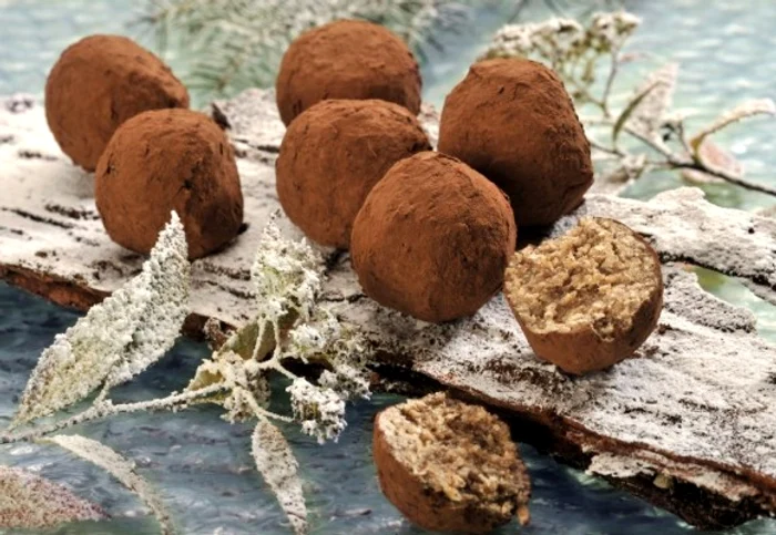 250 g fulgi de ovăz2 pliculeţe zahăr vanilat2 linguriţe coajă de lămâie7 linguri lapte condensat1 linguriţă cacao2 linguri pesmet de biscuiţi2 linguriţe zeamă de lămâie sau de portocalăpudră de cacao sau ciocolată rasă pentru decor