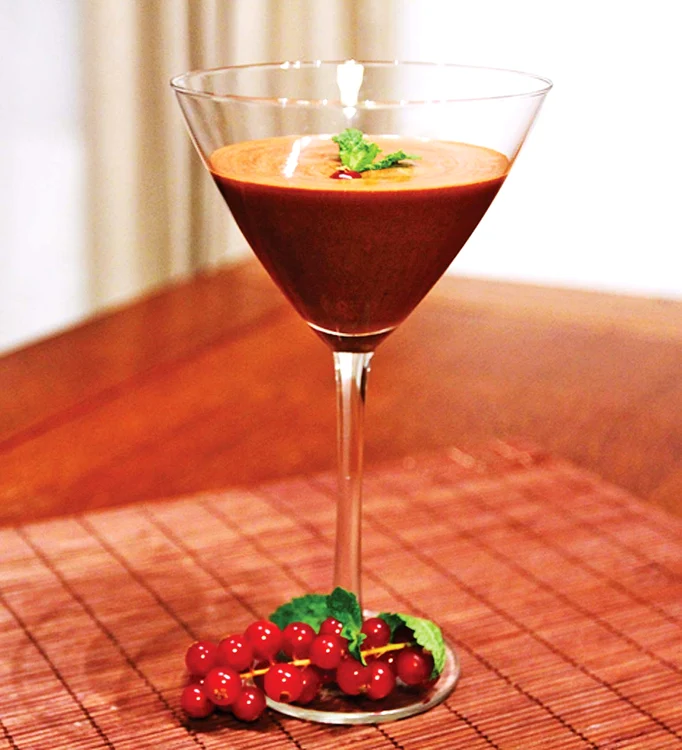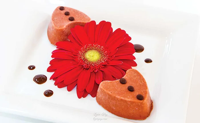 Unul dintre cei mai cunoscuţi promotori ai alimentaţiei vegane, Ligia Pop, ne dă o reţetă pe cât de gustoasă, pe atât de sănătoasă.Ingrediente: 200 g zmeură congelată, 2 banane, 50 g scorţişoară, 50 g cacao, esenţă naturală de vanilie, miere, 100 ml apă filtrată. Pentru glazură: 100 g unt de cacao sau ulei de cocos, 70+100 g îndulcitor, 200 g cacao, esenţă de vanilie.Mod de preparare: Toate ingredientele se mixează până când compoziţia devine un smoothie gros sau o îngheţată. Se pune în forme de inimioare care se dau la congelator timp de o oră. Pentru glazură: se topeşte untul şi se amestecă împreună cu restul ingredientelor, apoi se picură peste inimioarele scoase din congelator sau chiar se toarnă şi se îmbracă total cu glazură.