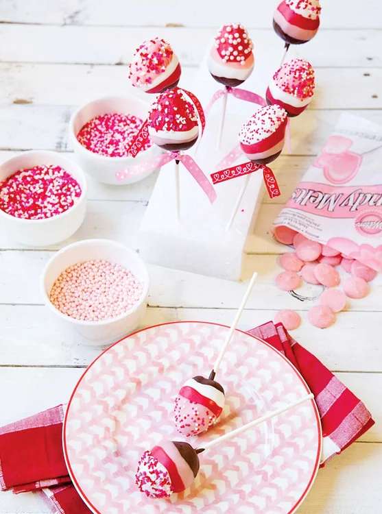 Iată un desert care arată spectaculos, se face rapid şi e ideal în dormitor.Ingrediente: Căpşune proaspete, ciocolată neagră, beţe, ciocolată albă, colorant alimentar şi biluţe colorate de zahăr.