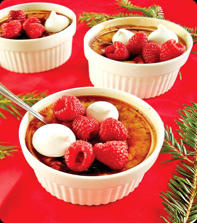 Celebrul Chef Nicolai Tand ne propune pe blogul lui o reţetă delicioasă şi uşor de făcut.Ingrediente: 1 litru de lapte, 8 gălbenuşuri, 200 g zahăr, un baton de vanilie, fructe de pădure. Pentru bezele: 4 albuşuri, 225 g zahăr şi o linguriţă de esenţă de vanilie.Mod de preparare: se pregătesc bezelele bătând albuşurile cu restul ingredientelor până se obţine o spumă fermă. Într-o tavă tapetată cu hârtie de copt se pune spuma cu o lingură şi se dă la cuptor timp de o oră. Apoi se topesc 100 g de zahăr în două linguri de apă, pe foc. Când a căpătat o culoare brună, se toarnă în forme termorezistente. Se încălzeşte laptele, se adaugă miez de vanilie. Separat, se amestecă 100 g de zahăr cu gălbenuşurile, se încorporează laptele călduţ şi se toarnă peste formele de caramel. Apoi se dau formele la cuptor, într-o tavă cu apă, pentru 35 de minute. Crema de zahăr ars se decorează cu bezea şi cu fructe.