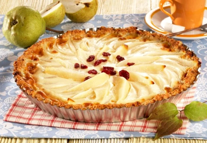 Tartă cu pere şi cremă de iaurt