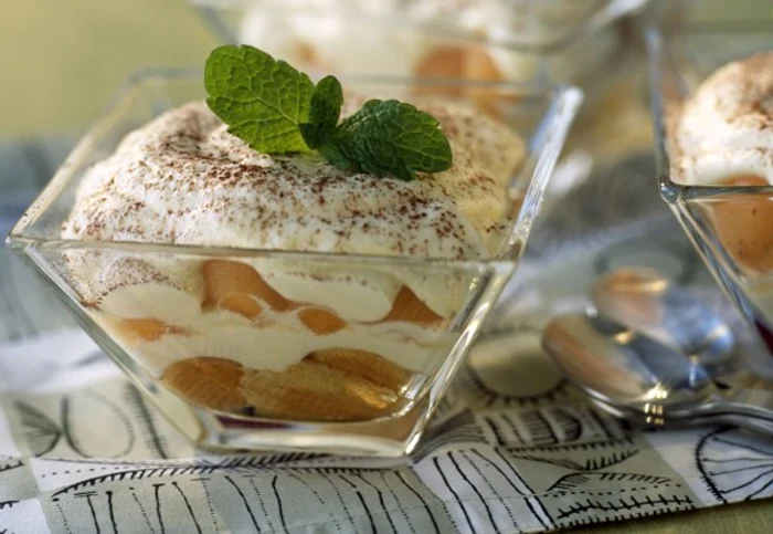 Bați frișca cu zahărul vanilat, până se întărește. În alt recipient, amesteci crema de mascarpone cu laptele și apoi o încorporezi în frișcă, de jos în sus și o dai la rece.