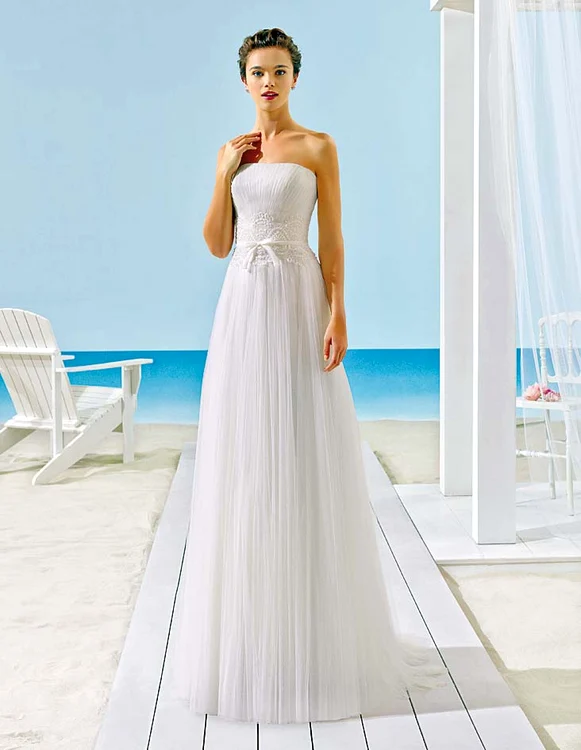 Rochia de mireasă cu decolteu în V este alegerea celor care doresc să pună accent pe partea superioară a corpului şi să creeze un efect de alungire a siluetei. Un V adânc, împodobit cu dantelă sau aplicaţii florale oferă un look ultrafeminin.