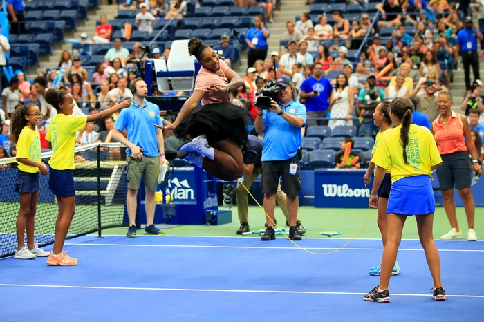 Serena Williams a participat pe arena ”Arthur Ashe” la o serie de acțiuni în cadrul ”Kids Day”. Campioana nu s-a sfiit să sară coarda alături de micuți. Serena va evolua astăzi (noaptea ce urmează în România), pe același teren, în compania polonezei Magda Linette (60 WTA). În jurul orei 18.00, pe arena ”Louis Armstrong” va evolua și Simona Halep, în compania lui Kaia Kanepi (Estonia / 44 WTA).