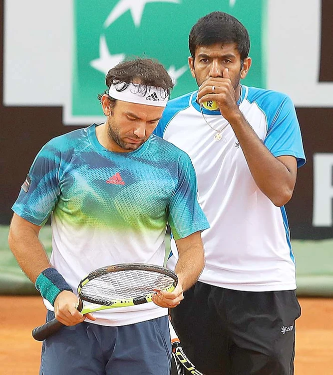 Florin Mergea/Rohan Bopanna, cap de serie numărul 6, s-a calificat în optimile de finală, după succesul în souă seturi, 6-3, 6-4 în faţa cuplului francez Gregoire Barrere/Quentin Halys. Perechea Horia Tecău/Jean-Julien Rojer (România/Olanda), cap de serie numărul 2, a fost eliminată în turul secund, fiind învinşi de perechea Pablo Cuevas/Marcel Granollers (Uruguay/Spania), scor 5-7, 6-4, 6-3. În 2015, Horia Tecău şi Jean-Julien Rojer au ajuns până în semifinale la Roland Garros.