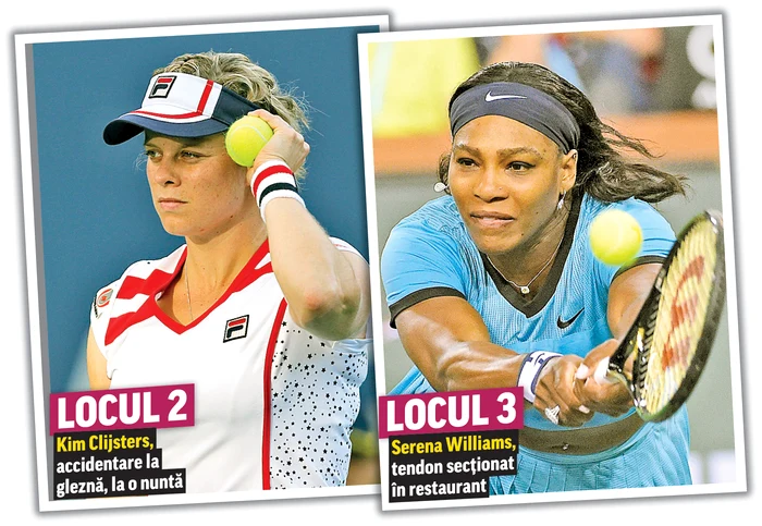 În luna aprilie 2011, a venit ca un şoc vestea accidentării belgiencei Kim Clijsters. Aceasta se afla în plină formă după revenirea în activitate, dar a fost nevoită să absenteze două luni, după ce a dansat la nunta vărului său, Tim. În timpul unui dans, ea şi-a suit glezna atât de tare încât verdictul a fost necruţător: două luni de pauză. A revenit la Roland Garros, dar după acest turneu şi încă vreo două, accidentarea i-a recidivat şi a stat „pe bară” până la finalul sezonului.În iulie 2010, toată lumea a fost şocată să audă că Serena Williams, lider mondial şi câştigătoare a turneului de la Wimbledon, a ajuns la spital cu tendonul tăiat! Ce se întâmplase de fapt e de domeniul fantasticului! Imediat după cucerirea celui de-al patrulea titlu la Wimbledon, Serena a plecat împreună cu echipa ei la restaurant, pentru a celebra victoria. Numai că nu la Londra, ci la Munchen! Cum atunci era Campioantul Mondial de fotbal, fanii au aruncat halbele pe jos de bucurie la un gol. Serena, fiind desculţă şi neatentă, a călcat într-un imens ciob, care i-a secţionat tendonul de la piciorul drept! Nu a mai jucat până în vara anului 2011.
