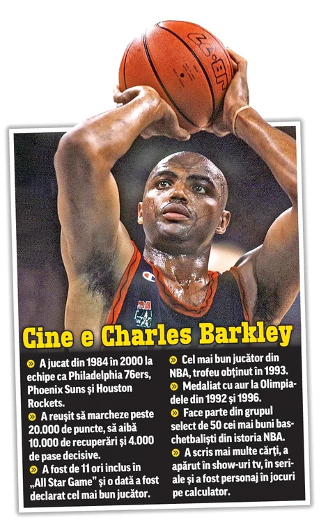 Un uriaş de doi metri şi 120 de kilograme, cu un caracter pe măsură. E Charles Barkley, unul dintre cei mai buni baschetbalişti din istorie şi de asemenea medaliat cu aur la Olimpiadă. Acum are 53 de ani, nu mai face senzaţie sub panou, dar faptele sale recente l-au adus din nou sub lumina reflectoarelor.