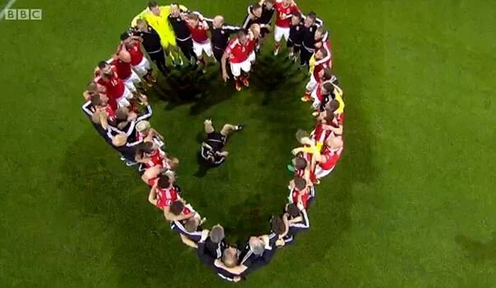 Unul dintre factorii cheie pentru succesul Țării Galilor de la Euro 2016 este spiritul de echipă incredibil. Acest lucru a ieșit în evidență mai mult ca niciodată când, la finalul victoriei obținută în fața Belgiei (3-1), jucătorii galezi s-au ținut de brațe și au format o inimă la centrul terenului.