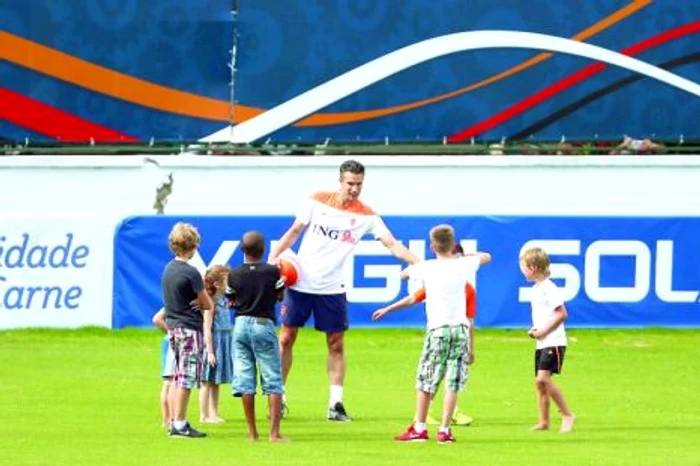 Eroul Olandei cu Spania, atacantul Van Persie, a oferit imaginea zilei, alături de fiica sa, Dina. Micuţa nu l-a scăpat din ochi pe "vârf", a alergat cot la cot cu el pe teren şi a încercat chiar să se bage la o "miuţă" cu băieţii celorlalţi componenţi ai naţionalei.