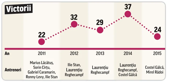 Luând în considerare numărul de meciuri câştigate în ultimii cinci ani, echipa antrenată în prezent de Mirel Rădoi s-a întors la nivelul pe care îl avea în urmă cu patru sezoane, atunci când criza era la ea acasă în Ghencea.