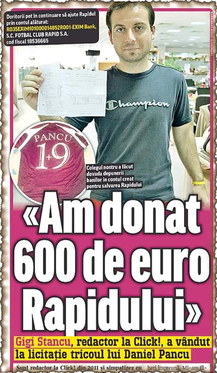 Demersul rapidiştilor ar fi fost inutil fără efortul suporterilor, care au donat toţi banii din care s-au plătit taxele şi avocaţii de la TAS. A fost vorba de aproximativ 12.000 de franci elveţieni, strânşi de fani prin cotizaţii individuale sau licitaţii ale unor obiecte primite de la foste glorii. A fost şi cazul redactorului Click!, Gigi Stancu, care a participat la această campanie cu suma de 600 de euro, obţinută din vânzarea la licitaţie a tricoului primit cadou de la Daniel Pancu. Toată suma cheltuită la tribunal se va întoarce însă în club ca despăgubire, la cererea elveţienilor.