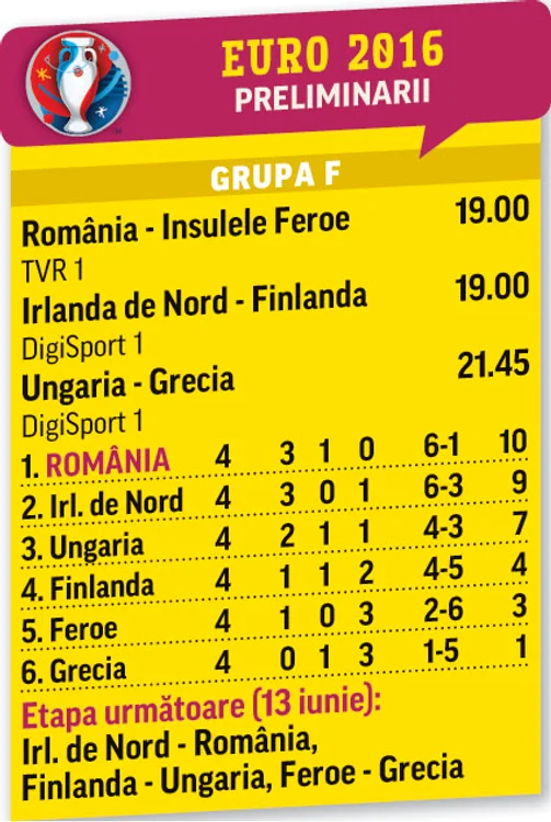 Meciul de duminică ar trebui să ne consolideze poziţia de lider în grupa pentru preliminariile EURO 2016. Până acum ne-am mai întâlnit de patru ori cu insularii şi de fiecare dată i-am bătut, golaverajul fiind de 15-1. Cu toate acestea, Anghel Iordănescu e speriat după ce aceştia au învins surprinzător Grecia, 1-0. „Înainte când jucam cu ei, se spunea că întâlnim bucătari sau ospătari. Acum au 11 jucători care evoluează în străinătate, în ţări ca Danemarca, Scoţia şi Norvegia.