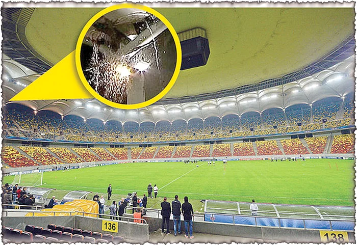 Chiar dacă ar fi corespuns normelor ISU, acesta are deja un trecut care nu-i face cinste. Totul a culminat la meciul dintre Steaua şi FC Voluntari, disputat sub o ploaie torenţială. Atunci, prelata s-a rupt şi apa a invadat tribunele şi gazonul. Astfel, acest acoperiş se poate lăuda că nu face faţă nici focului, nici apei.