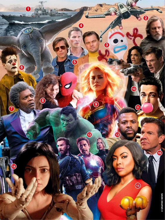 Anul 2019 va veni cu filme de mare excepţie! Iubitorii unor serii de mare succes se vor bucura de noi episoade din “Războiul stelelor”, “Povestea jucăriilor”, “Spider-Man”, şi “Răzbunătorii”. Cinefilii vor putea vedea filme realizate de cei mai talentaţi regizori de la Hollywood, cum ar fi James Cameron, realizatorul “Titanicului”, din 1997, Quentin Tarantino, care a lansat “Pulp Fiction”, în 1994, Night Shyamalan, Tim Burton, Jordan Peele, F. Gary Gray, şi J. J. Abrams, realizatorul seriei “Războiul stelelor”. În marile producţii care vor avea premiera anul viitor îi vom revedea pe cei mai faimoşi actori ai momentului: Leonardo DiCaprio, Brad Pitt, Margot Robbie, Al Pacino, Christian Bale, Robert Downey Jr, Bruce Willis, Matt Damon.
