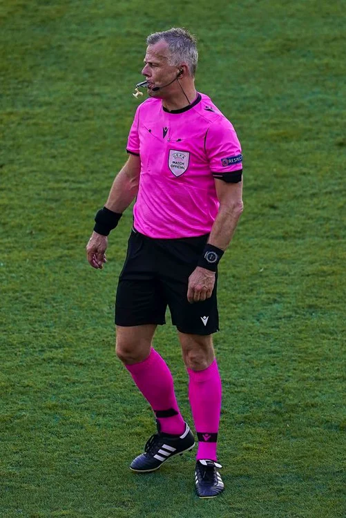 Olandezul Bjorn Kuipers (48), care a alergat ieri pe Wembley alături de naţionalele Italiei şi Angliei în jocul anului, finala UEFA Euro 2020, poartă ecusonul FIFA începând cu 2006 şi a fost votat, în 2018, "Arbitrul anului".