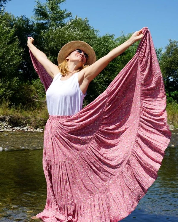 La fel ca anul trecut, când s-a retras la poalele Negoiului, în judeţul Sibiu, după infecţia cu COVID-19, Andreea Esca s-a reîntors în satul copilăriei sale, în miros de fând şi de flori de câmp.
