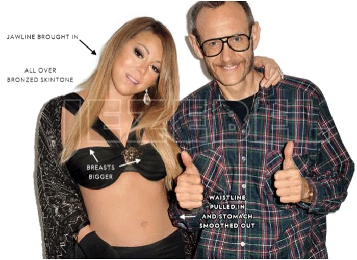 Din fericire, există Photoshop. Daily Mail a făcut publice, astăzi, transformările prin care trece trupul solistei pentru a fi cât mai aproape de perfecţiune. Editorii în Photoshop depun o muncă titanică şi au grijă să nu lase vederii niciun amănunt... real. Mai ales că Mariah, profesionistă desăvârşită, e cunoscută pentru cerinţele exagerate pe care le are de la cei cu care lucrează.