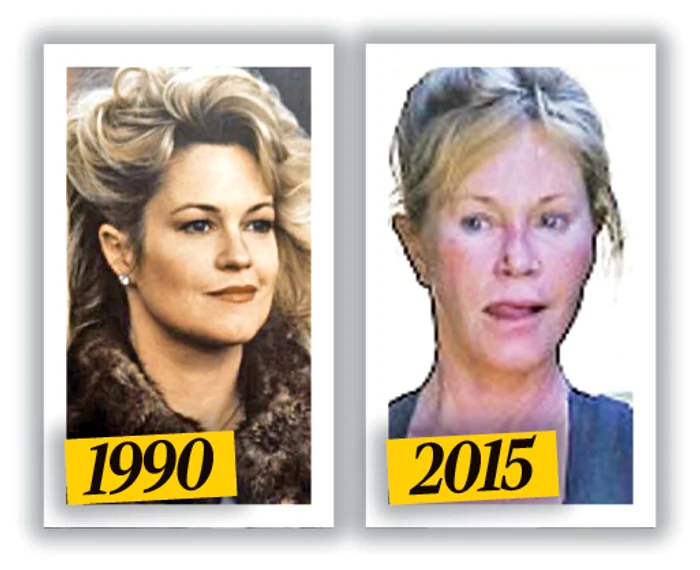 Actriţa de 58 de ani, Melanie Griffith, a ajuns de nerecunoscut. Duminică, paparazzii au surprins-o la ieşirea de la sala de gimnastică şi au fost şocaţi.Fosta soţie a lui Banderas şi-a făcut injecţii cu botox, şi-a mărit buzele cu acid hialuronic şi avea faţa împietrită. Faţă de cum arăta în 1990, Melanie e complet schimbată.