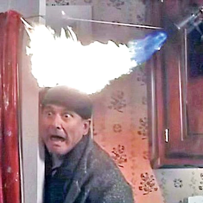 O flacără de sudură îi arde capul lui Harry şi îşi stinge părul şi scalpul cu zăpadă. În film, personajul se alege cu răni nesemnificative, în realitate ar fi suferit arsuri deosebit de grave, care ar fi putut să-i fie fatale.