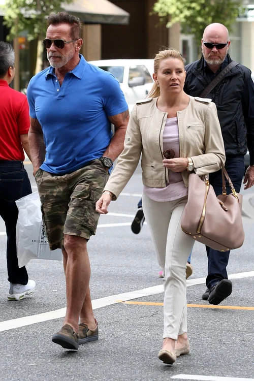 Starul seriei Terminator purta un tricou albastru, pantaloni scurți și pantofi sport de piele. Arnold ieșise la cumpărături și arăta într-o formă de invidiat! Mai mult ca sigur că nu a renunțat la antrenamente și face tot posibilul să își mențină corpul sculptat.