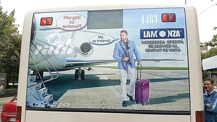Şi Cătălin Botezatu (49 de ani) a putut fi văzut străbătând Bucureştiul în lung şi-n lat pe patru linii RATB: 104, 226, 335 şi 336. Designerul e imaginea unei firme de trolere şi genţi de călătorie, care a ales să-şi promoveze produsele prin această metodă eficientă.