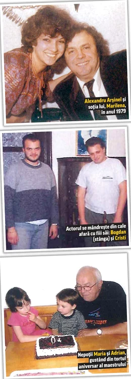 Despre soţie şi familie, maestrul Alexandru Arşinel vorbeşte rar, iar când îşi deschide sufletul vocea îi tremură de emoţie. Romantic incurabil, Arşinel a decis să îi facă o surpriză femeii care îi este alături de jumătate de secol, şi care i-a dăruit doi băieţi. În vara aceasta, mai exact în luna august, va organiza o petrecere în avans pentru a sărbători Nunta de Aur.