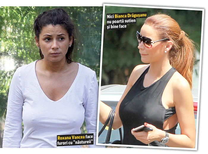 Anda Adam (36 de ani) şi Bianca Drăguşanu (35 de ani) nu sunt nici ele fane ale sutienului, mai ales că au implanturi, iar bustul stă ferm în orice ţinută. Sânii naturali ai Roxanei Vancea (25 de ani) sunt chiar mai cunoscuţi decât ea, iar fotoreporterii Click! i-au surprins în toată splendoarea. Fosta “vecină” de la “Neatza” nu poartă sutien, ci bustiere, iar acestea doar la sala de fitness, atunci când bustul imens trebuie ţinut în frâu. De nişte sâni superbi, mari ca două mingi de bowling, se bucură şi politicianul Cristian Boureanu. Iubita lui, Laura Dincă (19 ani) nu poartă nici ea sutien şi bine face. Dezinhibată, Vica Blochina (39 de ani) îşi vântură silicoanele oriunde, oricând şi atrage toate privirile când iese cu sfârcurile la plimbare.