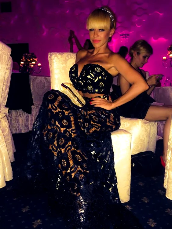 Cântăreaţa nu a mizat deloc pe simplitate atunci când şi-a ales ţinuta pentru nunta colegului de breaslă. Mai exact, Anda a purtat o fustă lungă din dantelă, transparentă, şi un body foarte decoltat, care-i lăsa la vedere abdomenul perfect tonifiat.