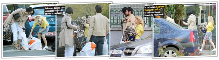 După câteva minute, îşi face apariţia şi Tuncay, pune şi el mâna pe plase după care, în şir indian, cei trei se îndreaptă către blocul din Primăverii, în care fizioterapeutul îşi amenajează noul cabinet medical. “Credeţi că sunt călugăr şi nu pot să fiu văzut în compania unei femei? Dacă aş face ceva greşit cu cineva, niciodată nu am să merg cu acea persoană în public. Dacă apar cu asistenta mea, Sandra, nu e ca şi cum aş face ceva nepotrivit cu ea. Andreea ştie despre această situaţie”, ne-a spus Tuncay în urmă cu trei săptămâni.